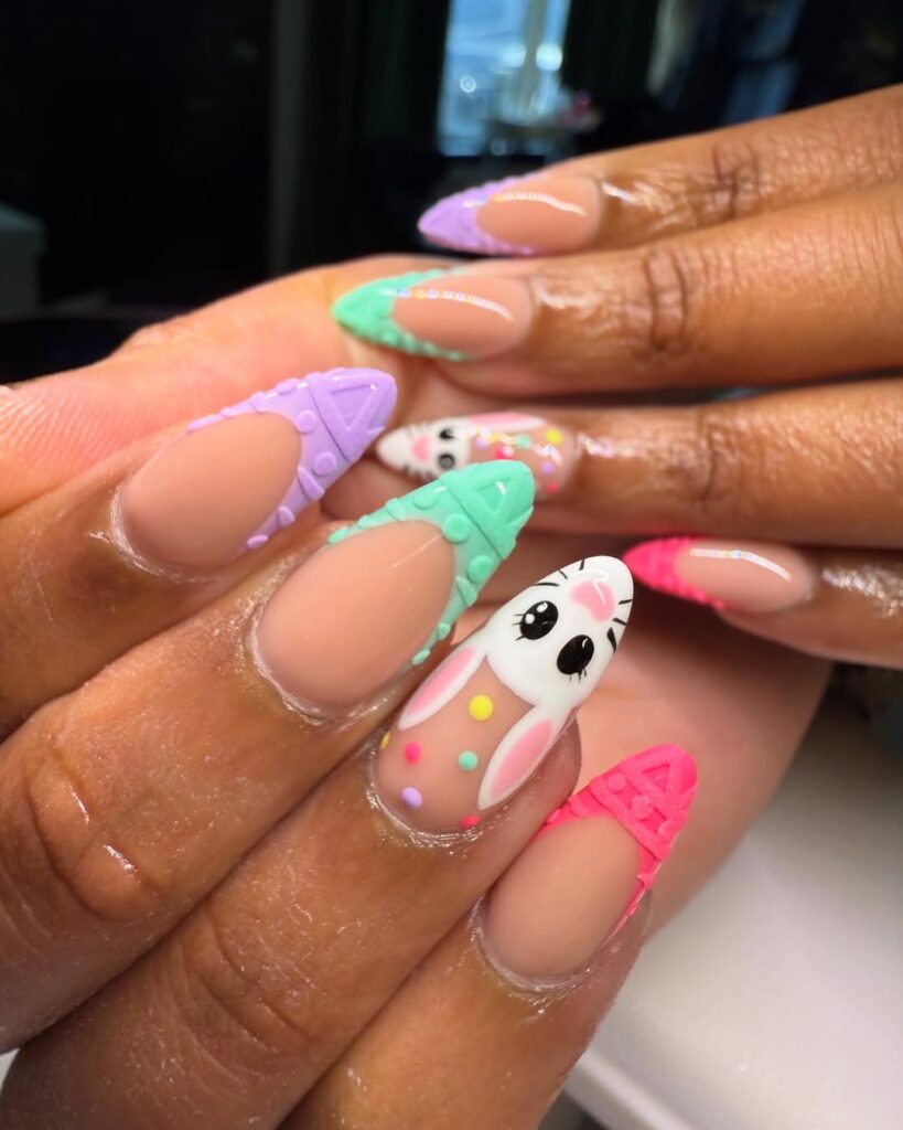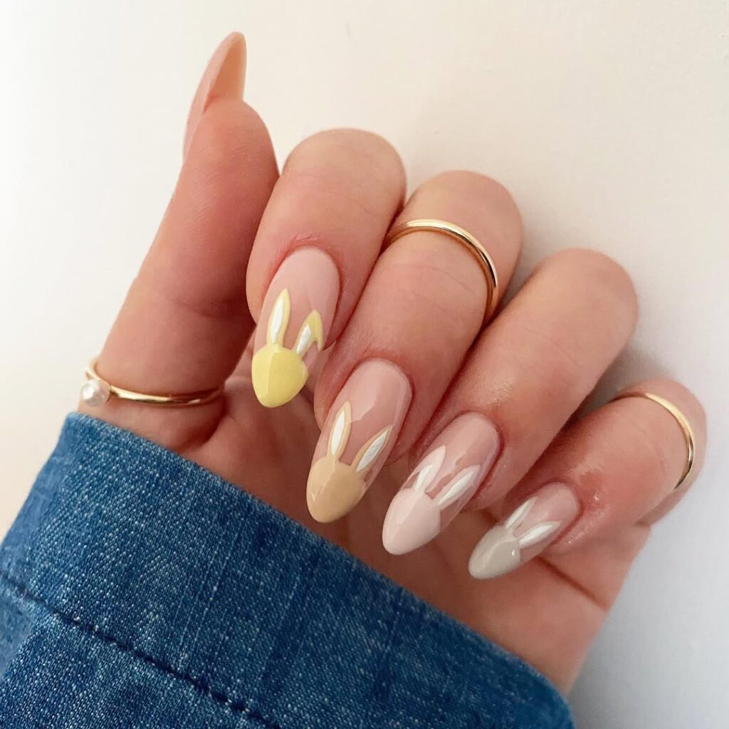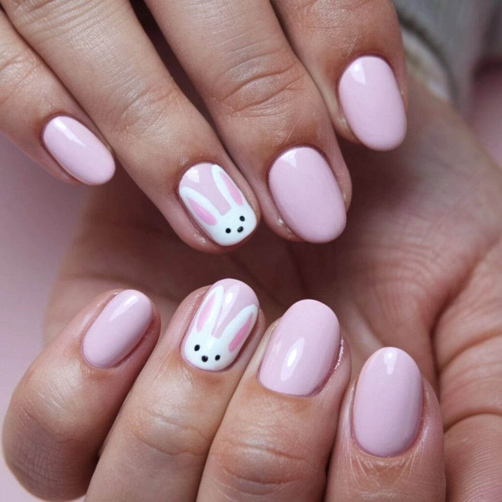Add a tiny bunny silhouette or face for cute and playful Easter bunny nails.