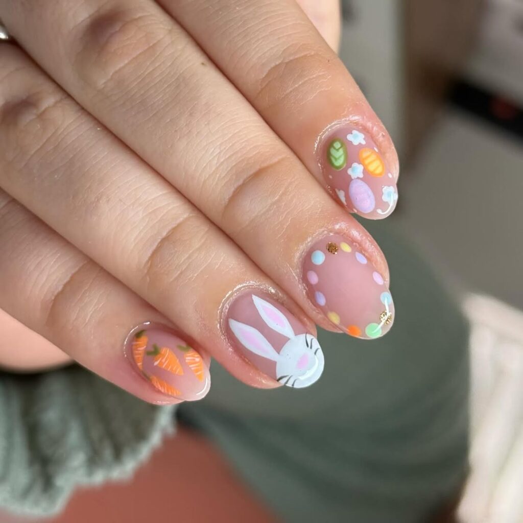 14. Bunny Accent Nail and polka dots