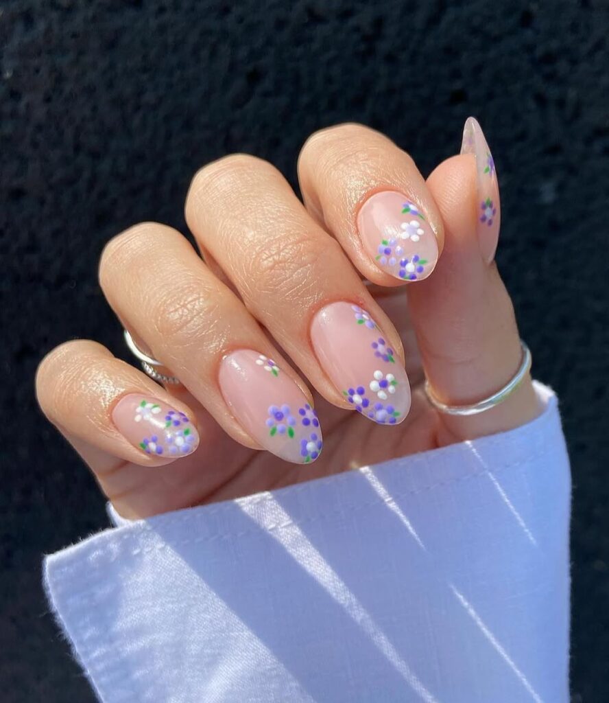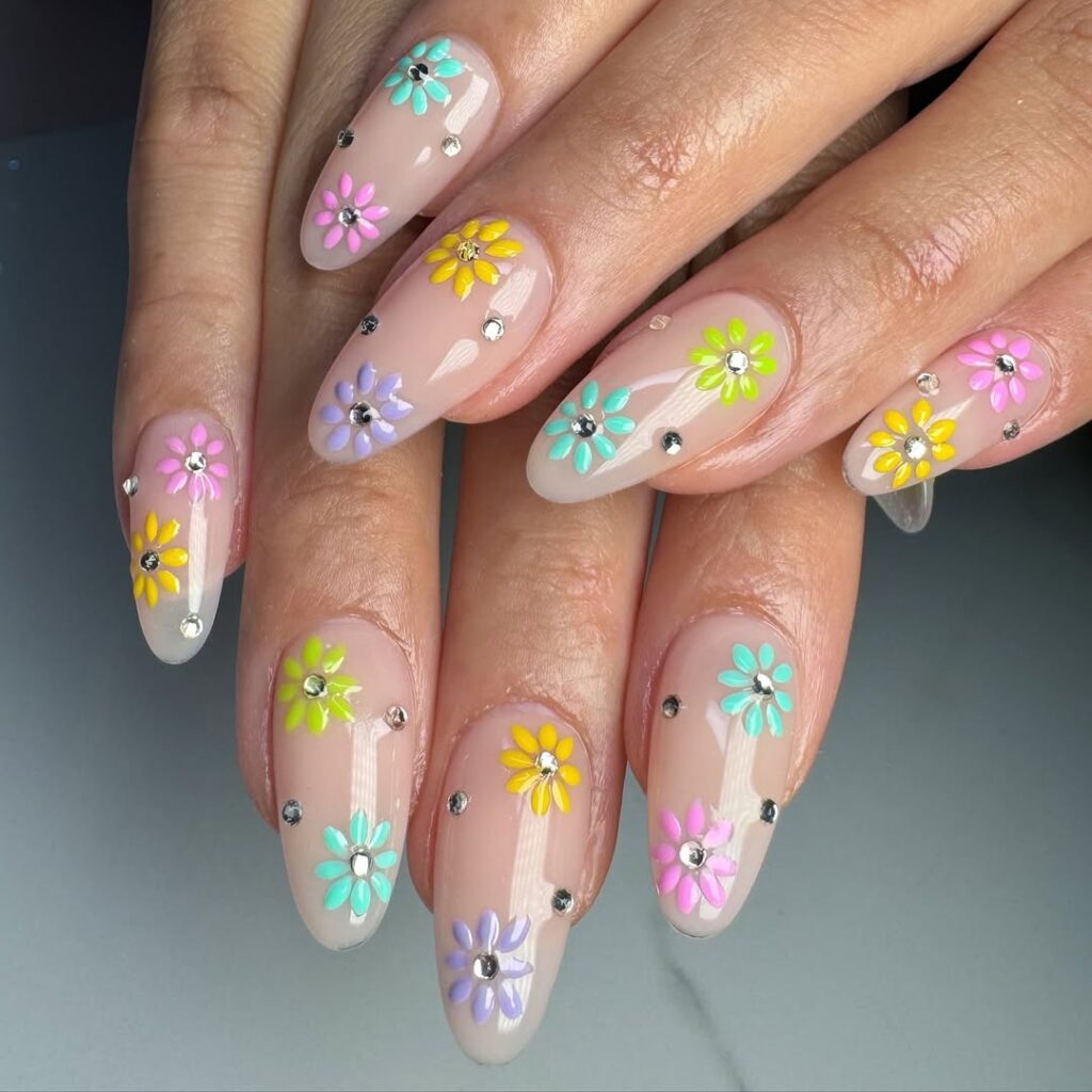 24. Spring flowers almond shape nails
