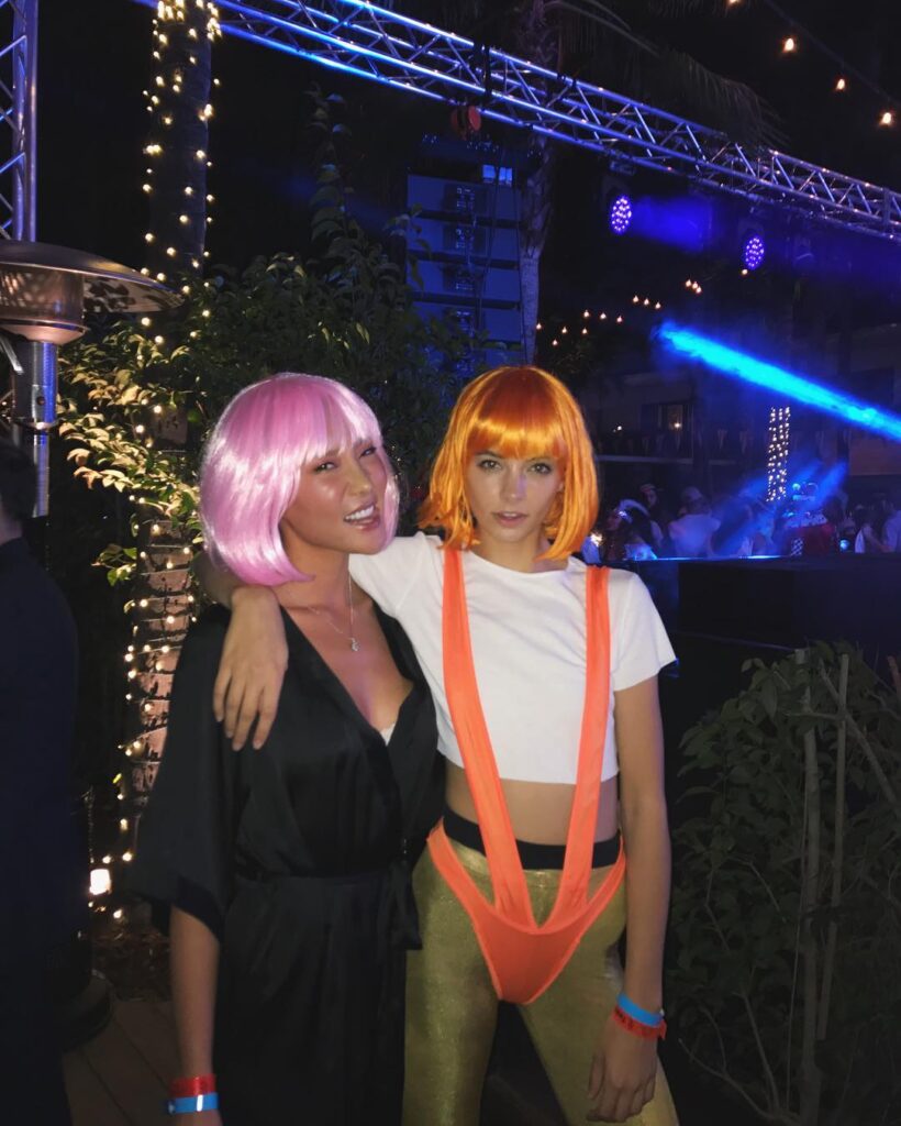Bright orange wig, white futuristic outfit, and suspenders. A cult classic costume that looks amazing on redheads.
