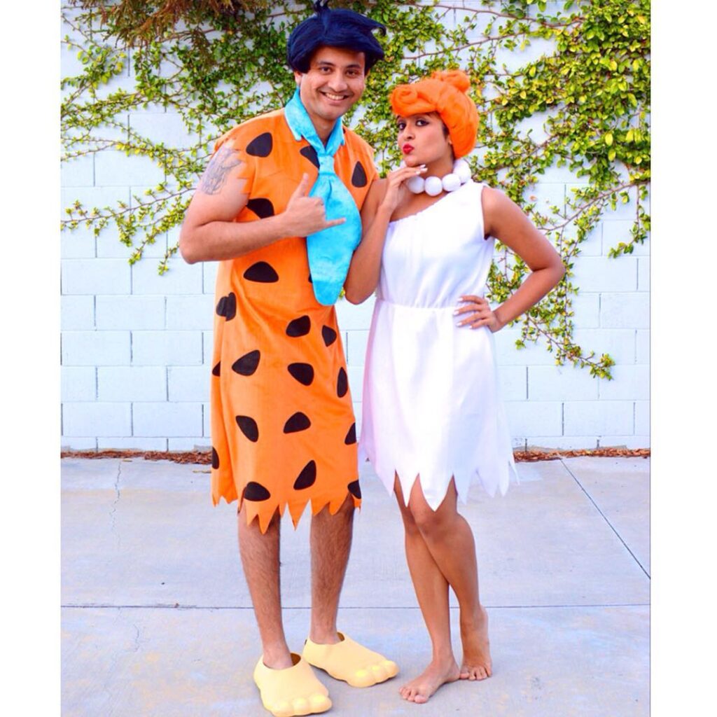 An easy DIY redhead Halloween costume! Grab a white dress, chunky necklace, and style your hair in Wilma’s iconic updo.