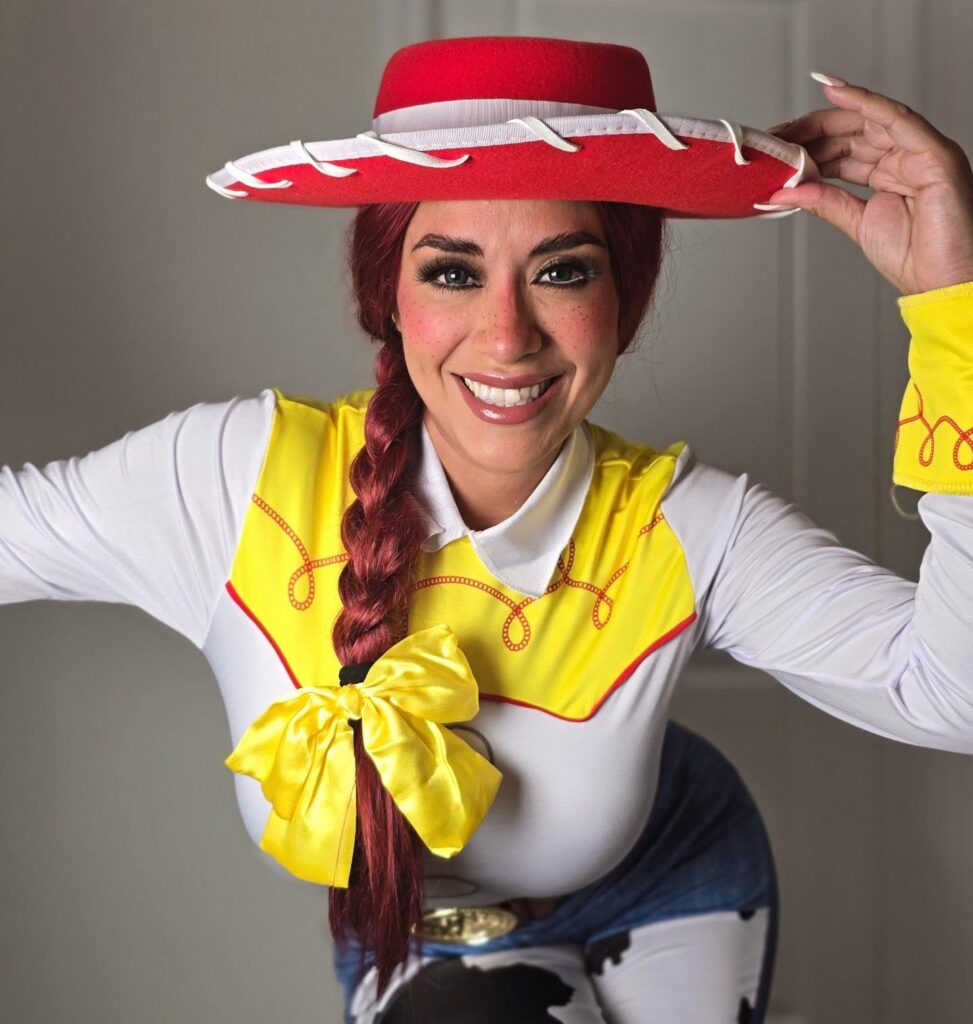 Cowgirl hat, yellow-trimmed shirt, jeans, and braids. Pair with Woody or Buzz for a fun duo costume.